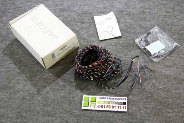 FAISCEAU ELECTRIQUE BMW X5 E53FAISCEAU D'ATTELAGE BMW X5 E53FAISCEAU D'ORIGINE BMW X5 E53FAISCEAU D'ATTACHE BMW X5 E53FAISCEAU SPECIFIQUE BMW X5 E53FAISCEAU JAEGER AUTOMOTIVE 7 PLOTS POUR BMW X5 E53Faisceau d'attelage JAEGER AUTOMOTIVE 12020503Coupure des radars de recul : ouiConnexion au réseau CAN : ouiSurveillance des feux de remorque : ouiConditions particulières : nonSi votre véhicule n'est pas pré-équipé, il faudra le faisceau complémentaire 22020500Les versions avec Pack Sport et Pack Luxe sont en général pré équipées.Poids du kit faisceau complet : 0.420 KgVous avez un véhicule marque BMW, type X5 E53, de mai 2000 à février 2007Voir vidéo sur les fonctions du module CFC.Voir vidéo sur la sécurité du faisceau Jaeger.Pour confirmer le modèle de votre véhicule, il faut vous reporter à votre carte grise.Vous pouvez l’identifier en regardant sur votre carte grise :Emplacement E = N° de série du véhicule.Emplacement D2 = Type du véhicule.Emplacement D3 = Nom commercial.Emplacement B = Date 1ère immatriculation.Il est impératif d'identifier très précisément le véhicule sur lequel vous voulez installer un faisceau spécifique, sinon, évidemment, il ne se montera pas.Le faisceau que nous proposons est le faisceau "d'origine", il se branche aux emplacements prévus par le constructeur, sans coupe des fils ou opération hors norme.Il ne s'agit pas d'un faisceau adaptable, ou universel, ou .... mais bien du produit dédié à votre véhicule, conforme.Vous conservez donc la garantie du véhicule (s'il est sous garantie).Le faisceau électrique doit être monté avec soin, en suivant la procédure de montage que vous pouvez afficher en cliquant ci-dessous sur "afficher la documentation".Les notices de montage des faisceaux électriques utilisent des pictogrammes.Le kit faisceau est livré complet avec la prise, les vis et boulons, fusibles (si besoin) et autres composants nécessaires à sa pose.Si vous voulez le monter vous-même, il faut bien vérifier la compatibilité du faisceau avec votre véhicule et ensuite suivre avec attention la notice de montage fournie et bien vérifier chaque opération avant de la réaliser.En dehors de quelques cas particuliers dans les marques premium (groupe VAG, Mercedes, BMW et dans quelques cas groupe PSA) la pose d'un faisceau est réalisable sans trop de difficultés, avec un outillage adapté.Dans la majorité des cas, il n'y a pas de "passage à la valise", sauf si l'information est indiquée dans la notice, avec dans ce cas la procédure à suivre.Lorsque nous installons un attelage et un faisceau sur votre véhicule, l'opération est faite conformément à la notice.Notre atelier dispose de tous les outils et équipements pour réaliser une pose soignée et bien intégrée pour protéger les fils et boitiers électroniques des risques extérieurs.Nous laissons systématiquement, dans la boite à gants, la notice de montage du faisceau avec nos coordonnées afin de rester à votre écoute en cas de problème.Concernant les faisceaux spécifiques pour véhicule, il faut préciser qu’aucun constructeur de véhicule ne fabrique de faisceau, ou de pneus, ou d’essuie-glace…. Ces éléments sont fabriqués par des sociétés dont c’est le métier : sous-traitant de l’automobile.Jaeger Automotive est l’un de ces sous-traitants.Entreprise Allemande dont les bureaux d’étude sont en Suisse, Jaeger Automotive dispose de bureaux dans bon nombre de pays Européens et sont certifiés ISO 9001 : 2009Tous les faisceaux Jaeger Automotive avec connexion CAN sont compatibles avec les éclairages à LED sur les remorques.Concepteur et constructeur de faisceaux spécifiques pour les attelages, Jaeger Automotive innove en permanence et apporte des solutions fiables et validées même sur les véhicules les plus récents.Patrick Remorques et Jaeger Automotive sont partenaires depuis la fin de l’année 2007, cela nous permet au quotidien d’apprécier la qualité des faisceaux spécifiques et du service offert par ce constructeur sérieux.Matériel disponible en général sous 72 heures.En stock à notre dépot de Ballainvilliers.