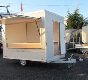 REMORQUE FOURGON MAGASIN HUMBAUR.REMORQUE DE VENTE équipée.REMORQUE HUMBAUR HVKU 132921REMORQUE HUMBAUR 5964HUMBAUR a conçu pour les professionnels du commerce ambulant et de la vente à emporter, un outil de premier choix dont le but est de vous servir le mieux possible.Les caractéristiques techniques des remorques de vente HUMBAUR série 5900 sont:Une caisse en panneaux sandwich de 45 mm d'épaisseur, ce qui rend cette remorque isotherme et vous mettra à l'abri des gros écarts de température.Une structure châssis modulaire en acier galvanisé sur laquelle est installé un essieu ALKO freiné et des roues de 14 pouces.Un plancher en CP marine 15 mm recouvert d'un revètement de sol professionnel très résistant.Cette remorque de vente est surbaissée.Les roues passent dans le plancher, le passage de roues est en alu, cela le rend plus solide.Grace à cela, le vendeur est à la bonne hauteur vis à vis de ses clients.Le côté droit est ouvrant, le verrouillage est intérieur, il est aussi équipé de vérins à gaz avec sécurité (pour empécher qu'il puisse se refermer) et d'une toile de protection pour empêcher les rentrées d'eau.La porte d'accès est sur l'avant, équipée d'une serrure. Une tôle d'alu sur le timon fait office de marche pied.4 Vérins de stabilisation aux 4 coins avec la manivelle.D'une roue jockey, de feux protégés, un ensemble homologué est prêt à prendre la route.Il ne vous reste plus qu'à faire les aménagements de votre choix ou....De choisir les différentes possibilités d'aménagements que nous proposons :Tout est possible.Dimensions utiles :Longueur 2945 x Largeur 2115 x hauteur 2300.Dimensions hors tout :4470 x 2260 x 2880PTAC 1350 KgDéclassements possible :1300, 1200, 1100, 950 KGCharge utile 323 Kg1 Essieu avec frein ALKO et roues 195/65 x 15Equipement de base en série :Comptoire de vente avec étageres haute et basse.Tablette rabatable.Options de la remorque HUMBAUR 5964 HVKU 132921:Roue de secours et support.Antivol de tête d'attelage.Immatriculation...................Aménagements intérieurs.PHOTOS des remorques de vente HUMBAUR HVK.